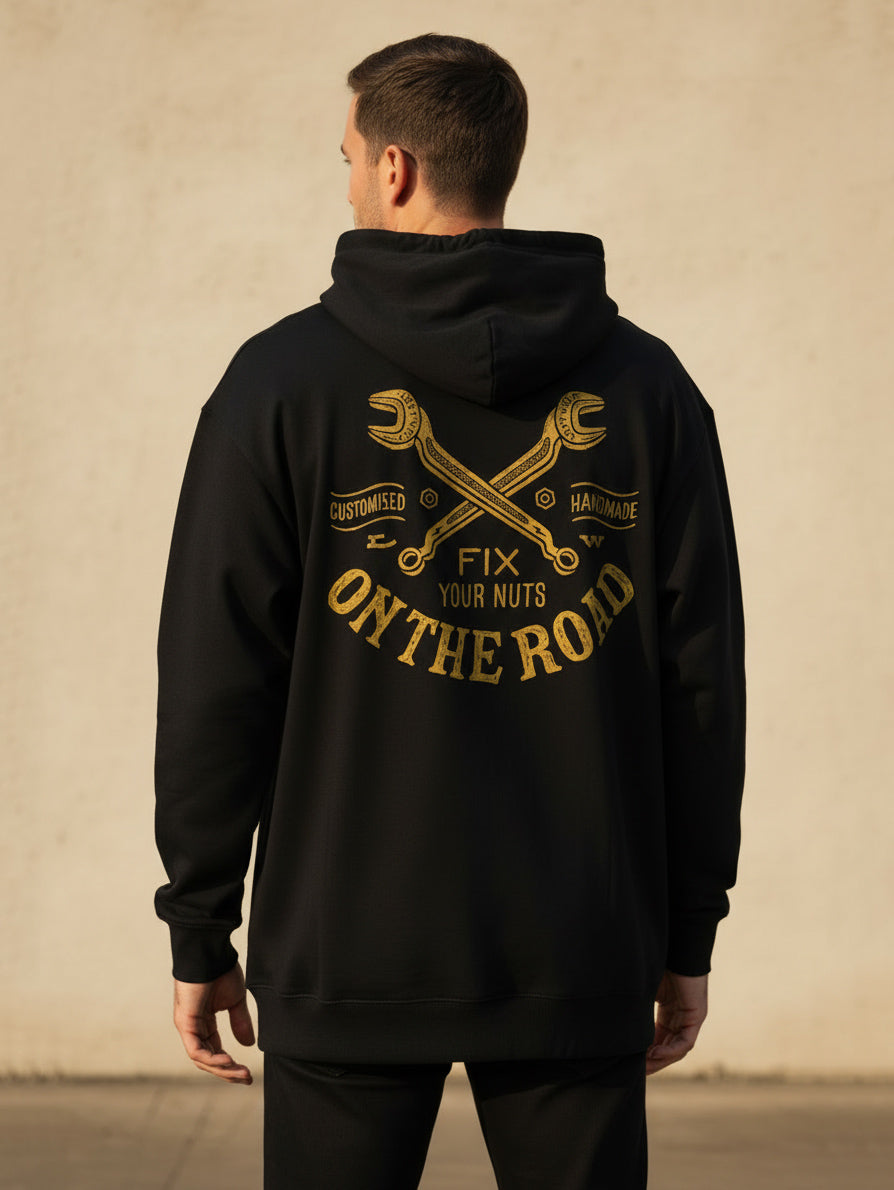 The Black “Fix your Nuts” hoodie sounds familiar to you! you've seen it at some biker event but you still DON'T have it... Find a solution today and get it!