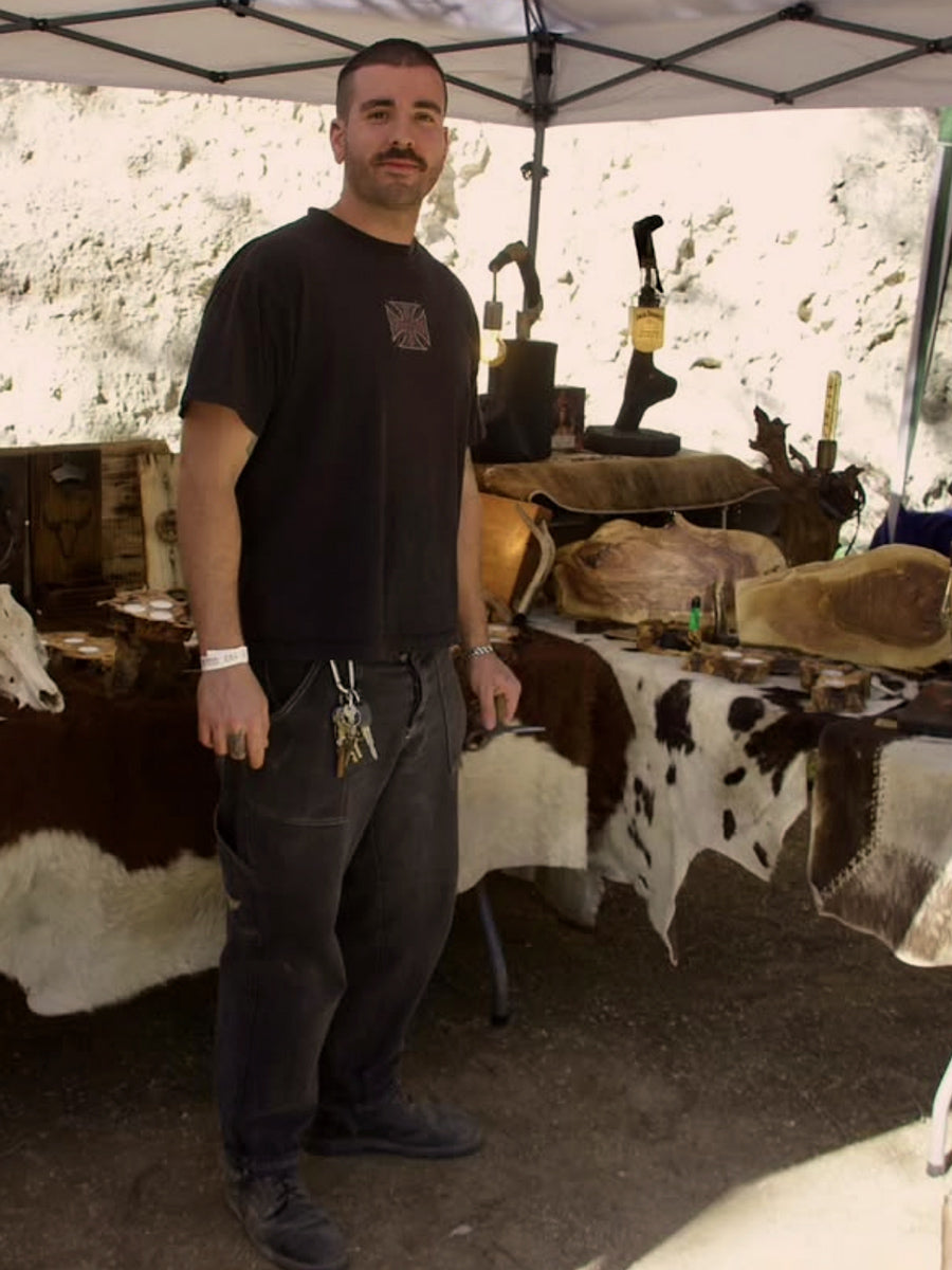 The “COMANCHE” black t-shirt is unique, made and designed by Lost Wolf to give a focus to Andrés, an expert when it comes to his work. In his workshop Maderas Comanche he dedicates his time to pure craftsmanship through wood, creating decorative pieces with a lot of soul.